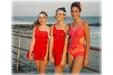 | Members of the Strutters marched in the Show Us Your Shoes Parade, part of the Miss America Pageant's week of festivities. They were invited to participate with Villanova University, their sister corps--Star Attraction, and campers from the Villanova Baton Camp. Senior Strutters Alyssa, Nadine, and Emma had a THRILLING experience, in spite of dealing with the tail end of Hurricane Isabel!! | |
